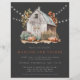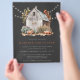 Rustic Fall Barn String Lights Wedding Invitation Flyer - features a quaint country farm with fall pumpkins, twinkling string lights and sunflowers. Perfect for the Bride and Groom who love a rustic theme. Background is charcoal grey, however all colours and text is editable in the design tool so that you can coordinate our invitation with your wedding theme. Invitation is part of a collection.