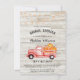 Rustic Fall Country String Lights Bridal Shower Invitation - An adorable vintage truck is carrying freshly harvested pumpkins from the farm on a distressed wood background with glowing string lights hanging overhead. Perfect for the bride to be who loves a rustic theme. Invitation is part of a collection.