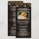 Rustic Fall Firefly Mason Jar Wedding Programs - features a rustic barn wood background with maple, oak and other leaves in fall colours -- red, burgundy, yellow, green and orange with string glowing lights through out. Mason jars filled with lights or fireflies are also added to the design.