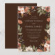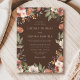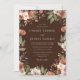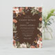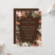 Earthy watercolor flowers and greenery decorate this elegant fall wedding invitation. This modern design features florals in rustic orange, purple and creams on a dark brown background. A beautiful autumn themed wedding invitation template for your special day.