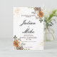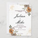 This forest green floral wedding invitation blends rustic charm with modern elegance. The dark green background is accented with delicate white florals and soft botanical elements, creating a timeless design perfect for fall or outdoor weddings. Paired with modern script and serif typography, this invitation is ideal for couples seeking a clean yet sophisticated look.
