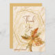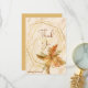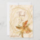 A warm-toned thank you card featuring watercolor autumn leaves, a golden geometric frame, and a marble background. Designed to pair with the rustic charm of fall weddings, boho celebrations, or earthy-toned bridal events.