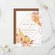 This save the date flat card features features rustic watercolor flowers and pumpkins in burnt orange, gold, terracotta, burgundy, blush with beige and brown pampas grass. For more advanced customization of this design, please click the "customize further" link. Matching items are also available.
