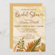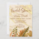 Bridal shower invitation with watercolor autumn leaves, warm marble background, and elegant calligraphy. A lovely choice for celebrating the bride-to-be in a rustic or seasonal design.