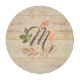 Digital art design features wood plank background with watercolor leaves wreath and customizable script font monogram