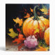 Golden rustic pumpkin painting surrounded by vibrant autumn leaves.
