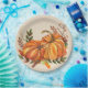 These beautiful, rustic 9" paper plates with watercolor pumpkins and fall leaves on a craft paper style background will look beautiful on your table. They will definitely add that finishing touch you've been looking for to grace your fall and Thanksgiving tables.
