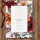 Add a touch of elegance to your bridal shower brunch event with this real foil fall floral bridal shower invitation. Large, watercolor burgundy, rust, and peach flowers with sage green foliage surround the white text box, which is framed in real foil, with large foil text to match. Created by Simply Farmhouse Press.