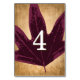 Here are custom table card numbers that you can personalize for your rustic fall wedding theme... Each card is designed with a unique hand painted autumn leaf atop of an old, worn out parchment paper texture. Many table numbers with different autumn coloured leaves are available in this rustic fall themed collection, along with matching invitations. Category: table number cards for your guest tables. Colours: tan, brown, deep dark purple, and plum.