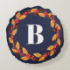 Rustic Fall Wreath & Navy | Personalized Round Pillow
