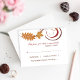 Response card can be customize with your response date and preferred accepts / regrets wording. Our "Falling Leaves" wedding stationery features saturated fall foliage and scrolling swirls. Colours include orange, copper, brown, red and gold.