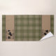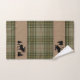 A beautiful, rustic themed bath towel set, featuring your family name and cabin, lodge, cottage or other desired text and its established date. This unique, custom design features a silhouette of a bull moose and pine trees on a burlap style print, accented with beautiful French country plaid in soft shades of grass and sage green. To see more designs like this, feel free to visit my store here at "Zazzle.com/Rustic_Charm". Thanks.
