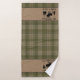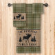 Rustic Family Cabin Moose Pine Green Plaid Burlap Bath Towel Set