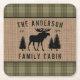 Rustic Family Cabin Moose Pine Green Plaid Burlap Square Paper Coaster