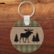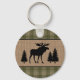Rustic Family Cabin Moose Pine Green Plaid Round K Keychain