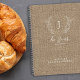 Custom vintage classic monogrammed family name and established year elegant chic rustic country farmhouse style dark beige burlap jute and white script recipes notebook journal. +++++++ A modern keepsake kitchen gift for weddings, anniversaries, housewarmings, Thanksgiving, Christmas, or any other occasion.