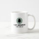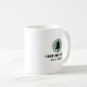 This design for your campsite features a stark black pine tree silhouette set against a soft light green circular backdrop, with your family name displayed prominently below the pine tree. The campsite location can also be added to the mug for an extra personal touch.