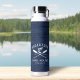 Rustic Family Name Lake House Navy Blue Wood Water Bottle