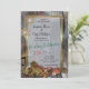 Unique wedding invitation cards featuring the wilderness are calling! Embrace the cosy charm of a rustic stone cabin in the woods with a cobblestone path.