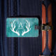 Rustic Farmhouse Antlers & Teal Rusted Metal Luggage Tag