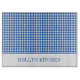 This cute glass cutting board features a rustic farmhouse inspired gingham plaid pattern in classic blue and white. Personalize the matching blue and white stripe with your choice of special text.