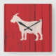 Rustic Farmhouse Goat Red Wood Panel Square Wall Clock
