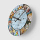 Rustic Faux Blue Wood Fence 12 Photo Collage Round Clock