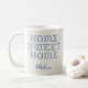 Sip your favourite drink in style with this charming personalized "Home Sweet Home" mug! Featuring a faux cross-stitch design in rich blue thread, this cozy mug mimics the look of real embroidery. The background resembles classic beige cross-stitch fabric, adding a rustic, handmade feel. Customize the text to make it uniquely yours—add a name, family name, or special message! Whether for yourself or as a heartfelt gift, this mug is perfect for coffee lovers, new homeowners, or anyone who appreciates a touch of vintage charm.