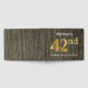 This guest book design features the ordinal number "42nd" with a faux/imitation gold-like appearance. It also features a custom name, and a rustic faux wood look background. It could be used at a party for somebody celebrating their forty second birthday. [~Z0000053]