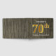 This guest book design features the ordinal number "70th" with a faux gold-like appearance. It also features a customized name, and a rustic faux wood look background. It could be used at a party for somebody celebrating their seventieth birthday. [~Z0000053]