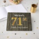 This guest book design features the ordinal number "71st" with a faux/imitation gold-like appearance. It also features a personalized name, and a rustic faux wood look background. It could be used at a party for somebody celebrating their seventy first birthday. [~Z0000053]
