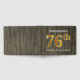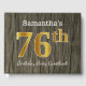 This guest book design features the ordinal number "76th" with a faux/imitation gold-like appearance. It also features a customized name, and a rustic faux wood look background. It could be used at a party for somebody celebrating their seventy sixth birthday. [~Z0000053]