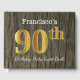 This guest book design features the ordinal number "90th" with a faux gold-like appearance. It also features a custom name, and a rustic faux wood look background. It could be used at a party for somebody celebrating their ninetieth birthday. [~Z0000053]