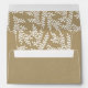 Rustic faux kraft paper textured envelopes with white foliage patterned inside.