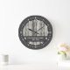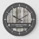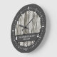 Rustic faux wood family name grey white large clock