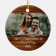 Celebrate your first Christmas as a married couple with this beautifully rustic ornament! Featuring a charming wood-effect background, this design allows you to upload your favourite wedding photo and personalize it with your names and the year. The text "First Christmas as Mr. & Mrs." is elegantly displayed, making this a perfect keepsake for newlyweds