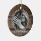 This gorgeous rustic custom photo ornament features a rustic reclaimed wood background, with a beautiful farmhouse style wreath encircling any custom photo of your choice. Two text lines at the bottom allow space for name, date, or message of your choice. "Our First Christmas"