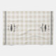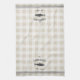 Customize your kitchen with this cute personalized towel featuring your family name or house name and year established in rich charcoal grey lettering accented with a fish illustration on a tonal plaid background.