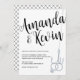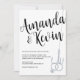 Rustic Fishing Hook Wedding Rings Black & White Invitation