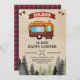 Amaze your guests with this rustic camping theme birthday party invitation featuring cute elements with eye-catching typography. Simply add your event details on this easy-to-use template to make it a one-of-a-kind invitation. Flip the card over to reveal a red buffalo plaid pattern on the back of the card.