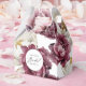 An ultra-feminine bridal shower favour box to captures the essence of rustic elegance with its abundant display of peonies in harmonizing deep burgundy, plum, dusty pink, and soft ivory white. The feminine botanical elements are combined as though they are in a sumptuous garden bouquet and make entertaining your guests so enjoyable! Modern script handwritten text spells out "Bridal" in lovely style. Personalize the text template with the Bride-to-Be's name.