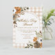 Rustic Floral Brown Copper Tan Mother's Day Brunch Invitation - A beautifully elegant and feminine Mother's Day Brunch invitation in tan and white gingham pattern with lovely copper and brown floral accents and a mix of copper brown script calligraphy and stylish block text. The reverse side of the invitation has a matching hand painted tan gingham pattern. Personalize with your event details. All text is editable. Also available as an instant digital download for easy sending via text, email or social media.