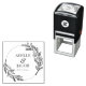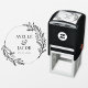 This self-inking rubber stamper features an elegant hand-drawn floral shabby chic botanical outline rustic boho frame decoration, surrounding three custom text boxes, that are very simple to personalize. The two name text boxes feature a minimalist serif font, and the lower text has a chic, simple and elegant handwritten sans serif. This stamp is perfect for wedding & bridal shower invitations, day-of stationary, and thank you cards. Don't need the extra bells and whistles? Simple transfer the design to a standard wood block rubber stamp. Manual ink pads are also available.