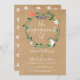 Featuring a modern floral garland of spring flowers on a rustic kraft background, this chic simple botanical engagement party invitation can be personalised with your special engagement party information. With a spring daisy pattern on the reverse. Designed by Thisisnotme©