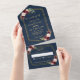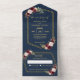 beautiful Rustic botanical - Navy Blue background and gold Geometric Wedding All In One Invitation ,Just simply fold each card into the outlined shape, and then seal and send no envelope needed for shipping (no ENV needed)
