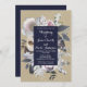 Rustic Floral Glam Navy Kraft Wedding Invitations