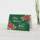 Merry Christmas for godson and his family card with rustic watercolor flowers and forest green background.