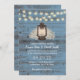 Rustic Baby's Breath Floral Lantern Dusty Blue Barn Wood Wedding Invitations.