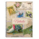 Personalized spiral notebook with pretty vintage floral patterns on a rustic, textured look background.