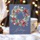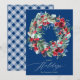 Rustic floral red chic blue Christmas wreath happy Holiday Card